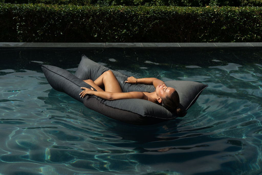 Each SOLAY Lounge is filled with polystyrene beads, chosen for their buoyancy, lightweight feel, and ability to drain quickly after use.